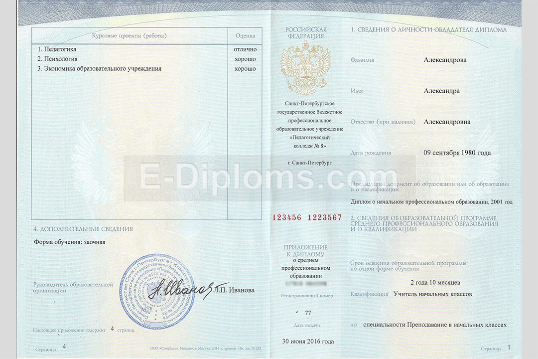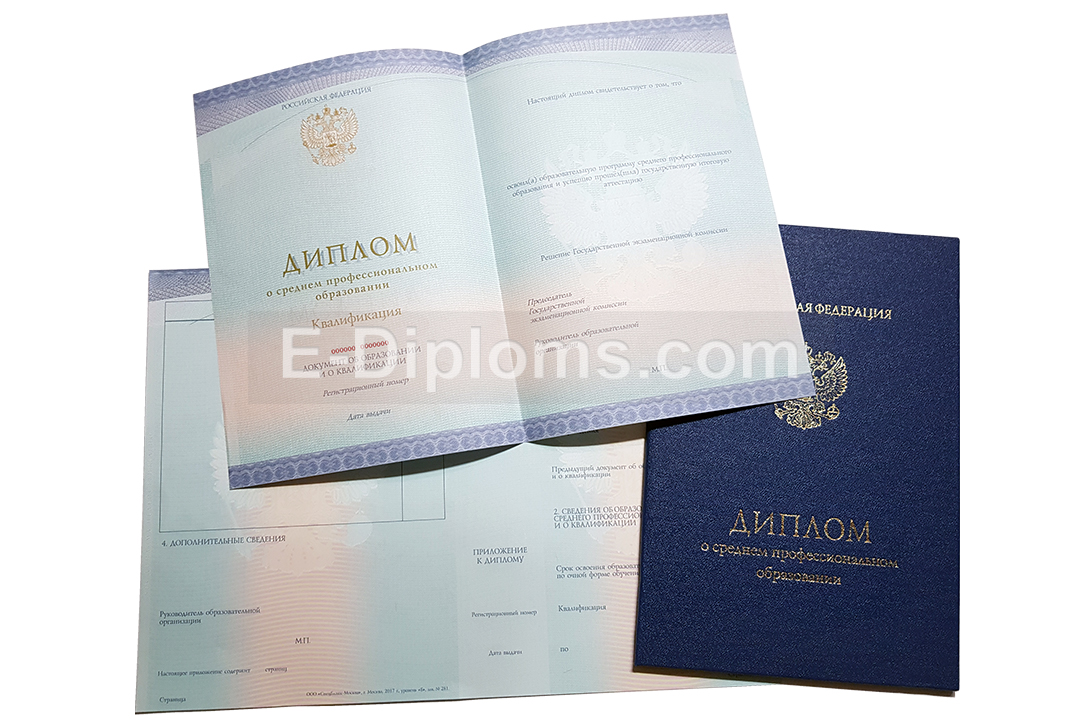 У нас на сайте Вы можете заказать диплом о среднем профессиональном образовании нового образца об окончании техникума / колледжа (специалист среднего звена) или пту (квалифицированный рабочий, служащий). Выбирайте любую профессию и ссуз, а мы качественно и профессионально изготовим ваш диплом. Доставка бесплатна, оплата при получении, для проживающих в регионах доступна услуга «макет», есть скидки. При заказе до 14.00 привезем уже завтра!