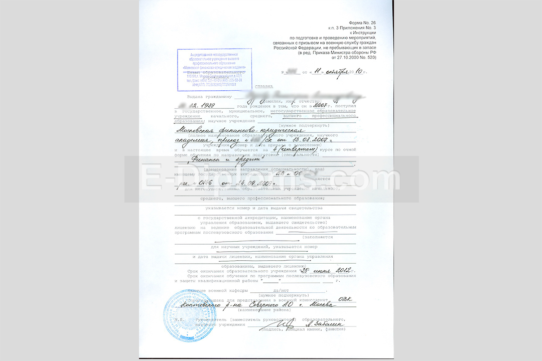 Справка в военкомат из учебного заведения справка в вренкомат 10 500 руб.